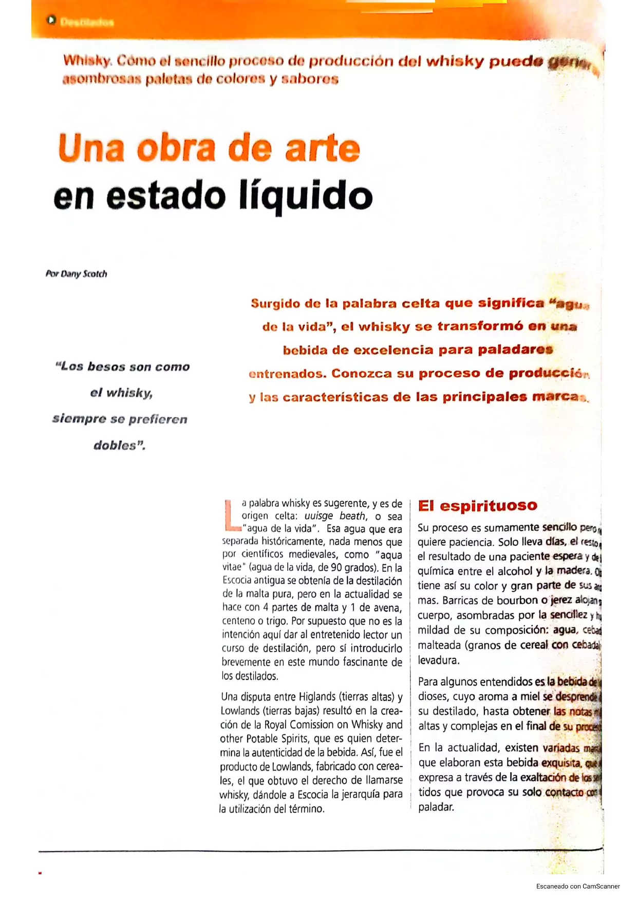 Por Dany Scotch Destilados. Cómo el sencillo proceso de producción del whisky puede generar asombrosas paletas de colores y sabores. “Los besos son como el ...
