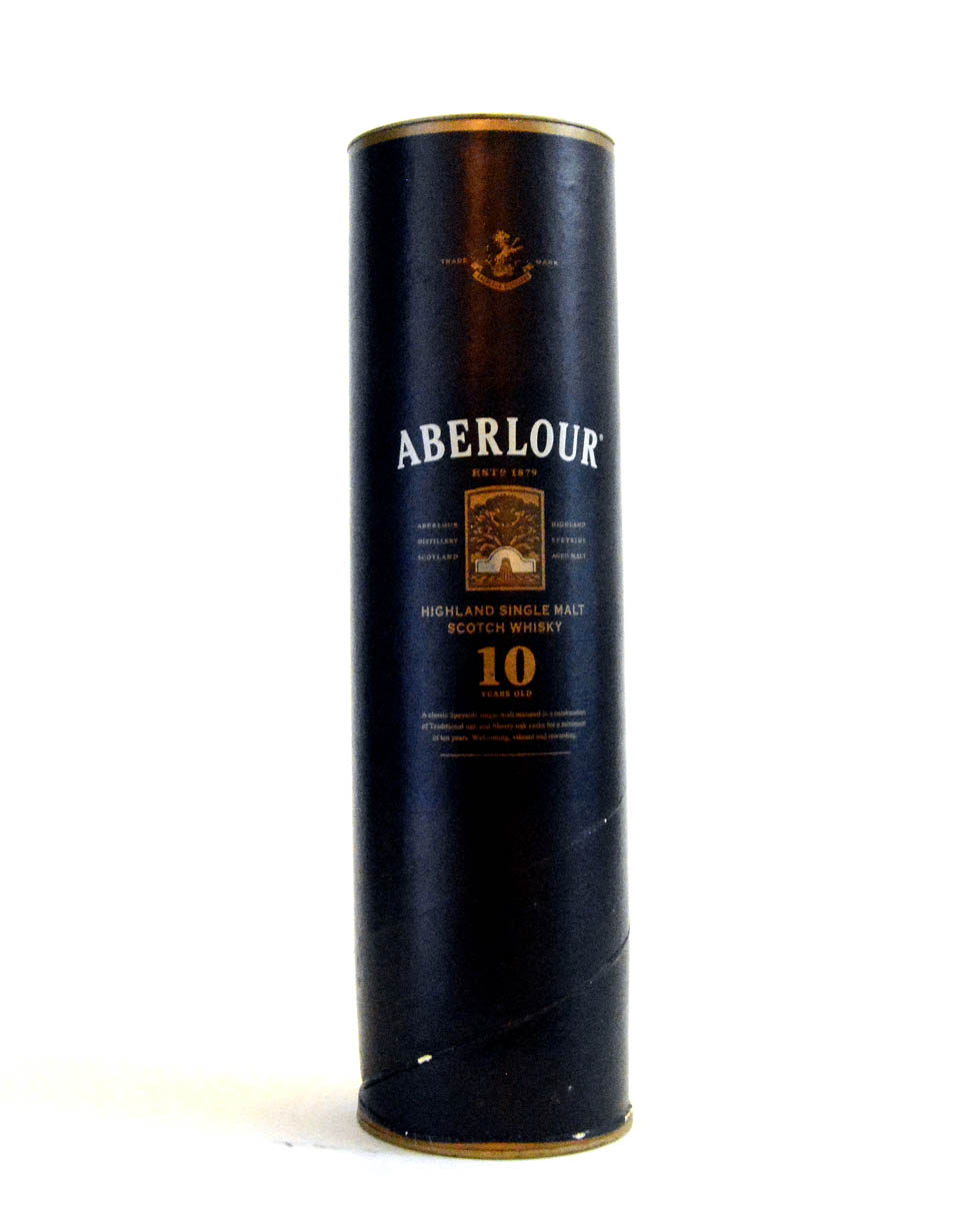 El tubo de Aberlour 10 Años, un clásico single malt de Speyside madurado en una combinación de barricas tradicionales para un sabor rico y profundo. (Solo el tubo).
