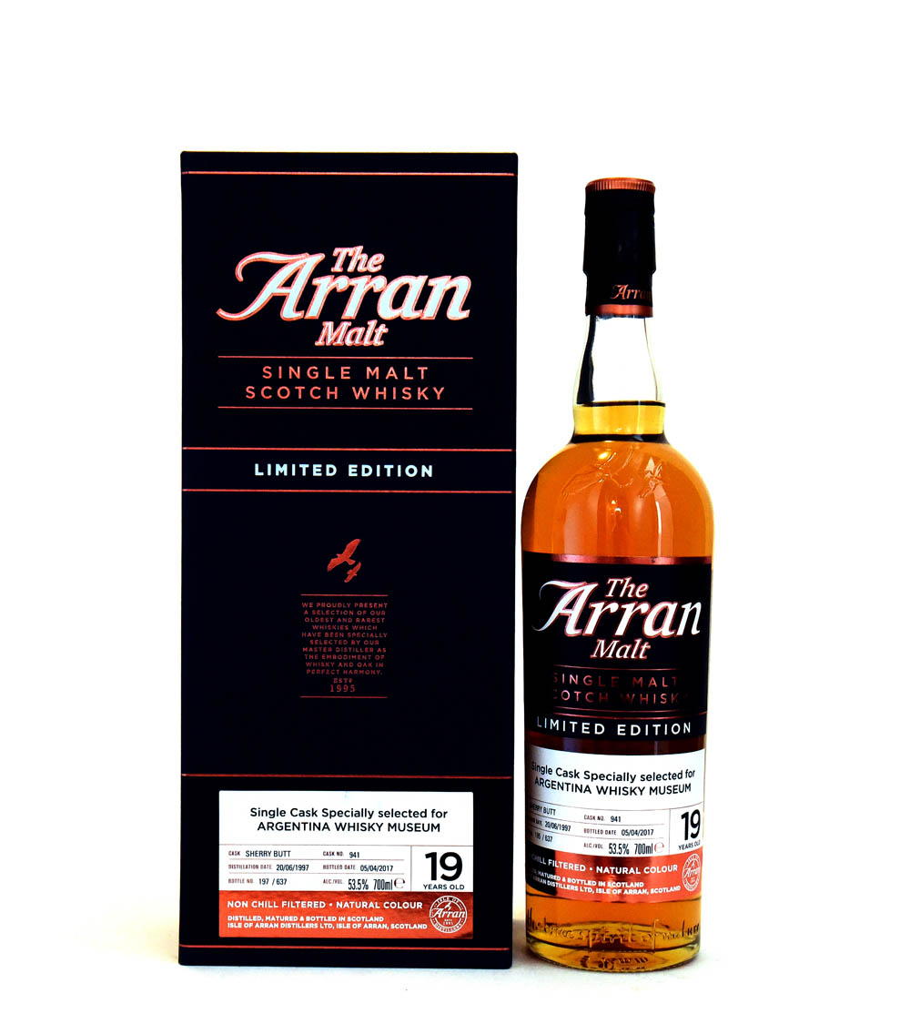 Una edición limitada de The Arran Malt de 19 años, seleccionada especialmente para el Argentina Whisky Museum, sin filtrar en frío y de color natural, proveniente de una sola barrica de jerez.