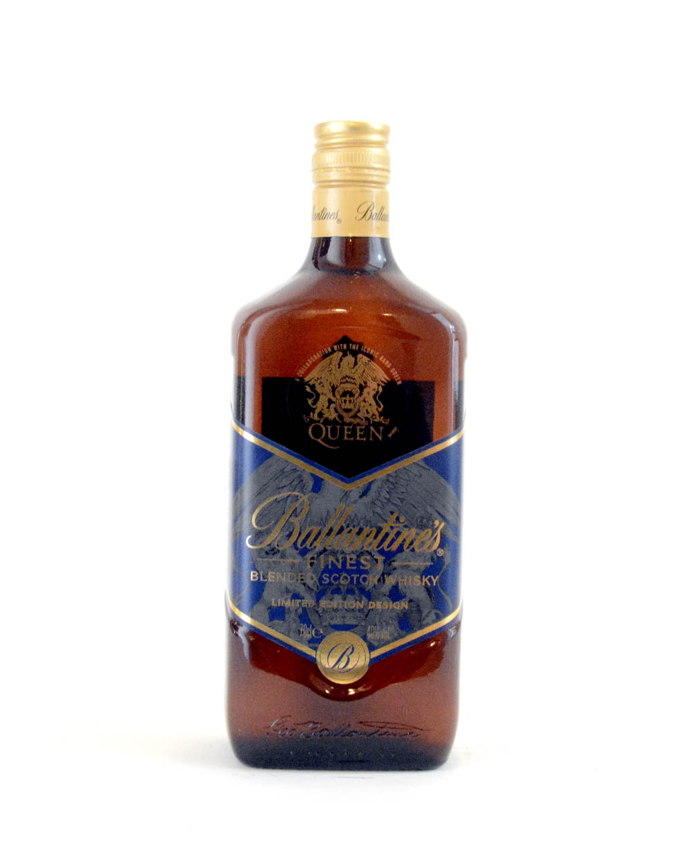 Una edición limitada de Ballantine’s Finest, un Blended Scotch Whisky, con un diseño especial en la botella. QUEEN