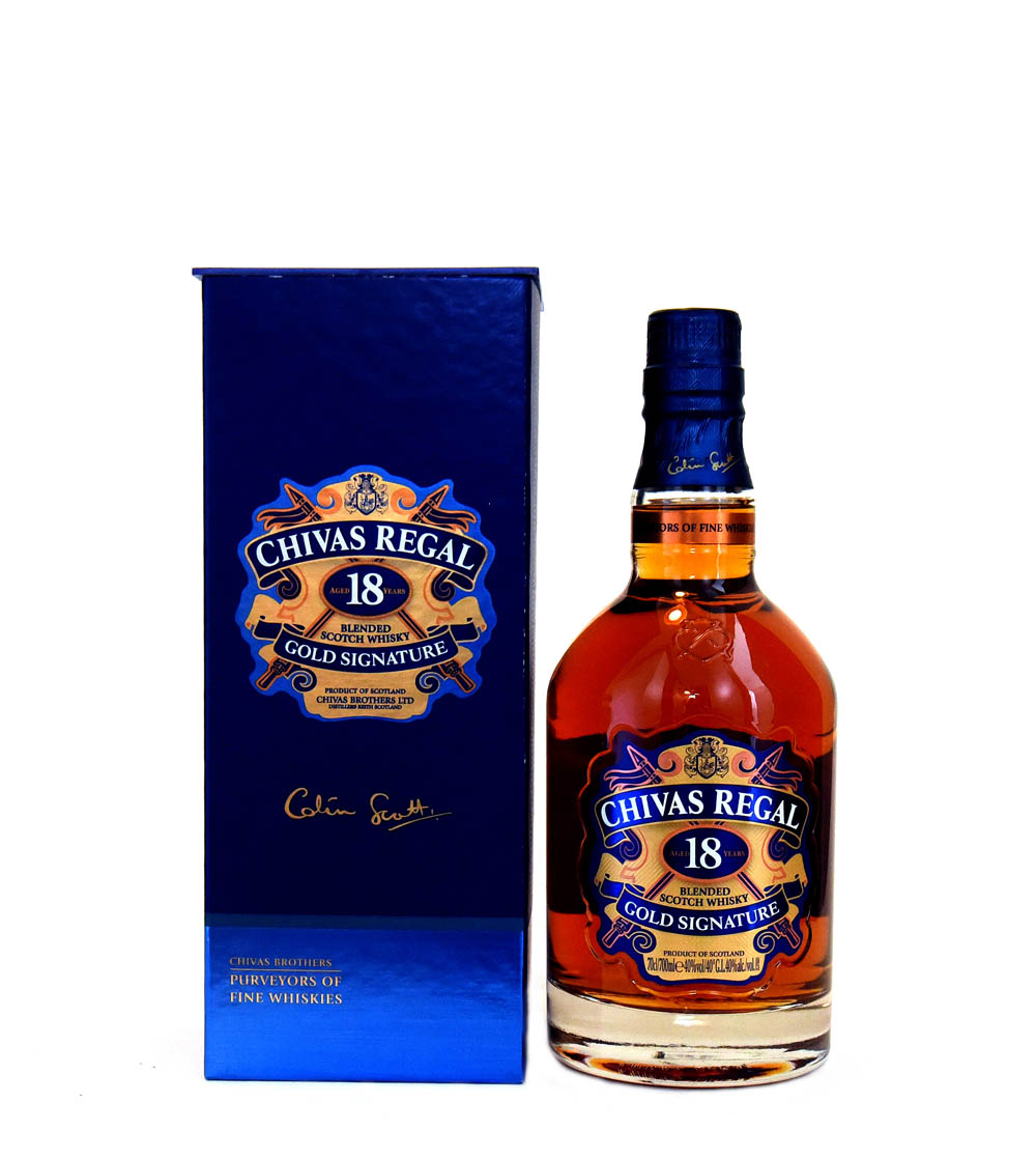 Chivas Regal 18 Years Gold Signature, un Blended Scotch Whisky rico y complejo, reconocido por sus múltiples capas de aromas y sabores.