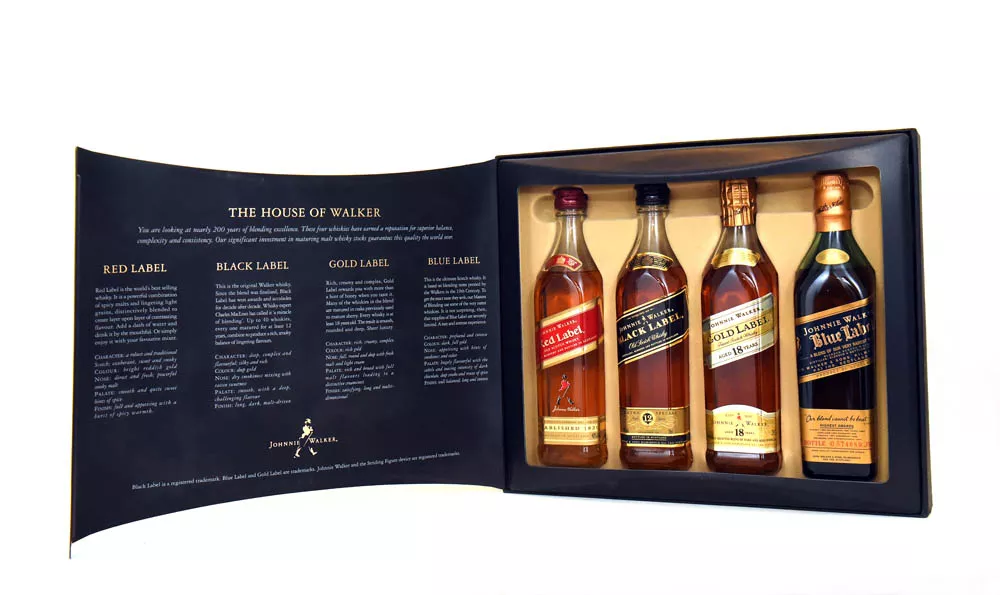 xplora la diversidad de Johnnie Walker con este set de miniaturas. Incluye Johnne Walker red, Johnne Walker gold, Johnne Walker black, Johnne Walker Blue