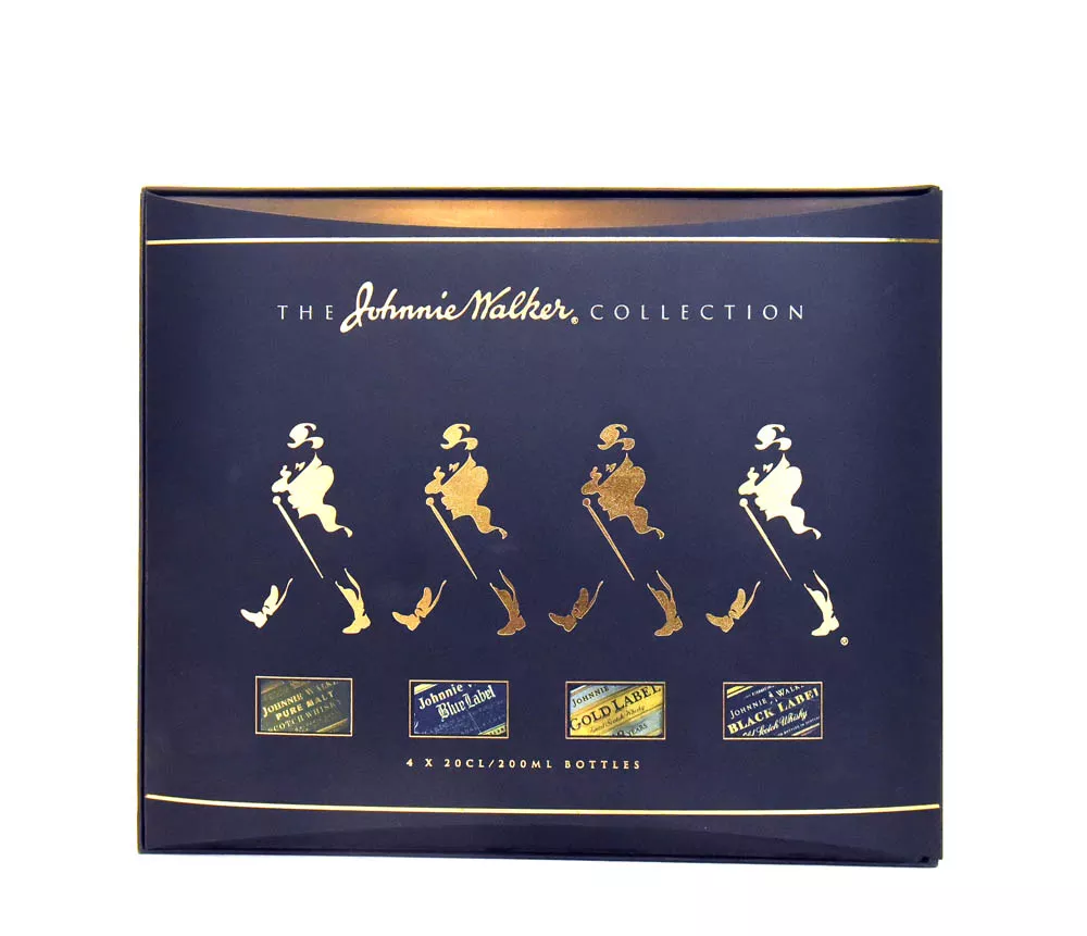 Explora la diversidad de Johnnie Walker con este set de miniaturas. Incluye Pure Malt, Blue, Gold y Black Label, ideal para degustar o regalar.
