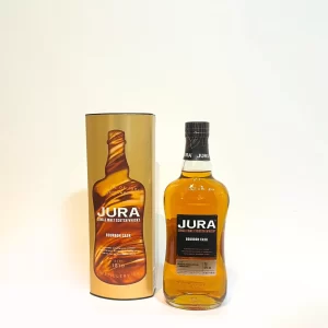 Jura Bourbon Cask es un single malt escocés originario de la isla de Jura, caracterizado por un estilo fresco, frutal y equilibrado. Madurado exclusivamente en barricas de roble americano que previamente contuvieron bourbon, esta expresión resalta el perfil naturalmente suave y aromático de la destilería.