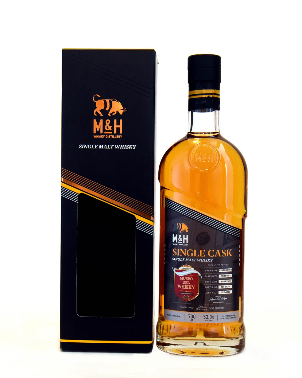 M&H Single Cask Exclusive Edition, un single malt whisky de la destilería Milk & Honey de Tel Aviv, Israel, de edición exclusiva, madurado en una sola barrica de ex-Borgoña.