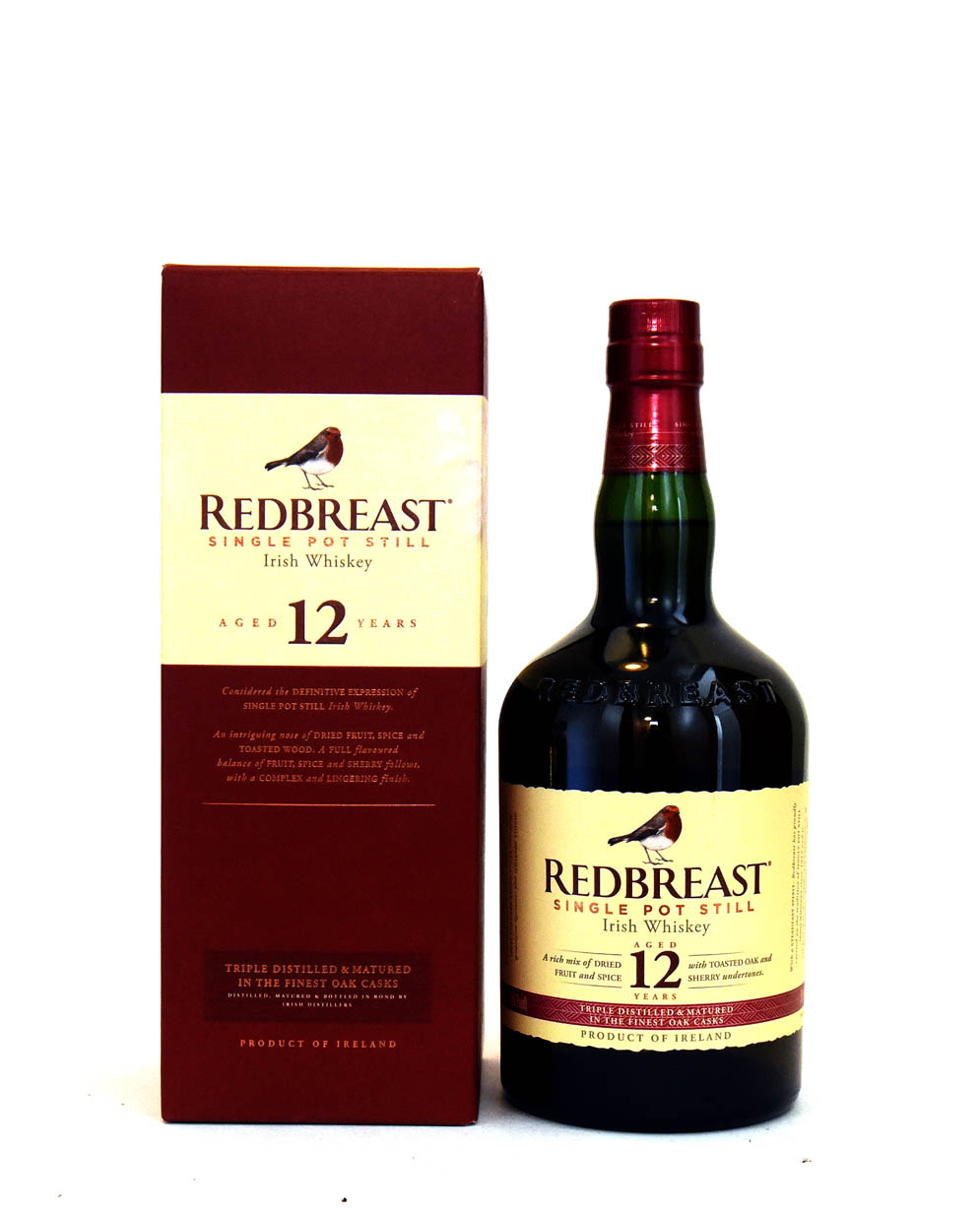 Redbreast 12 Años, una expresión definitiva del Irish Whiskey Single Pot Still, triple destilado y madurado en las mejores barricas de roble.