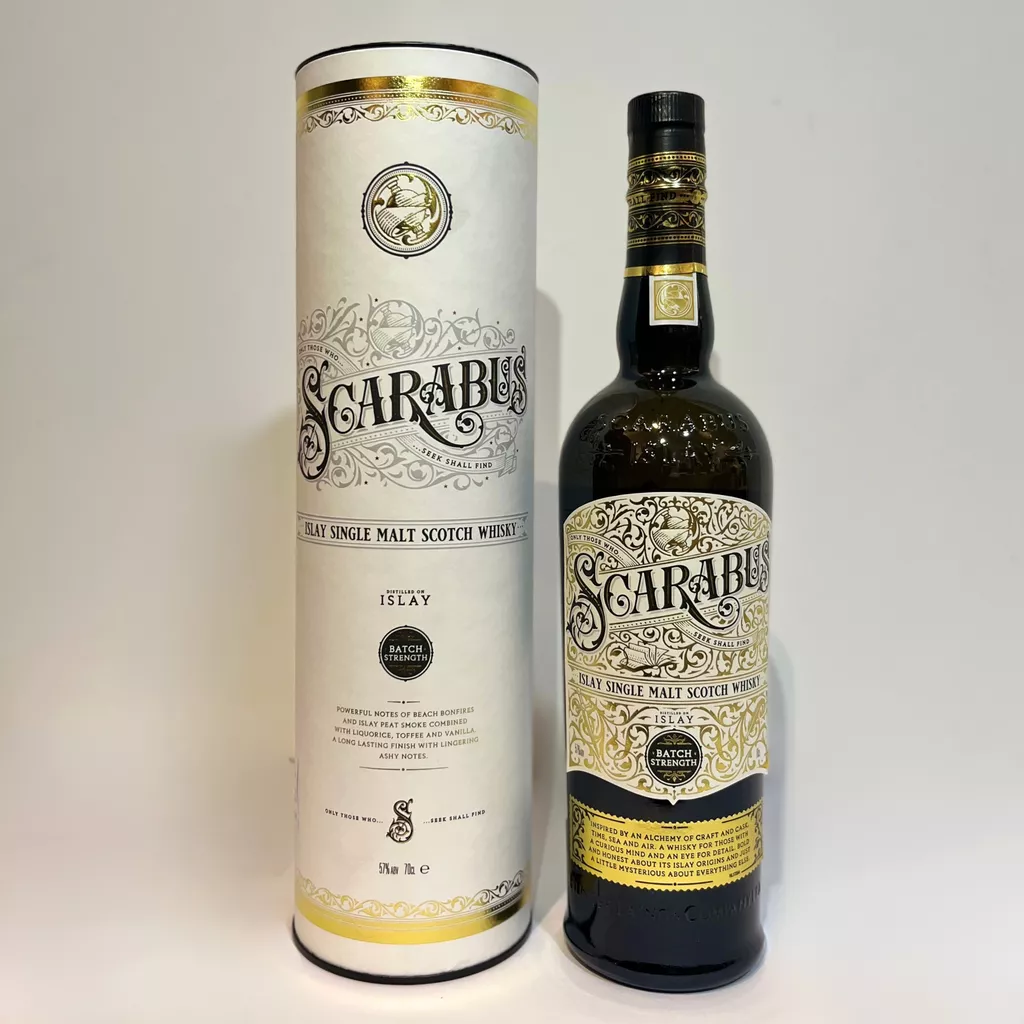 Scarabus Batch Strength es un single malt escocés de la isla de Islay embotellado por Hunter Laing, reconocido por su carácter intenso y su perfil fuertemente ahumado. Elaborado a partir de una selección de barricas especialmente elegidas, se presenta en su versión cask strength (57% ABV), sin filtrado en frío y sin agregado de colorantes, lo que preserva toda la pureza y potencia del whisky.