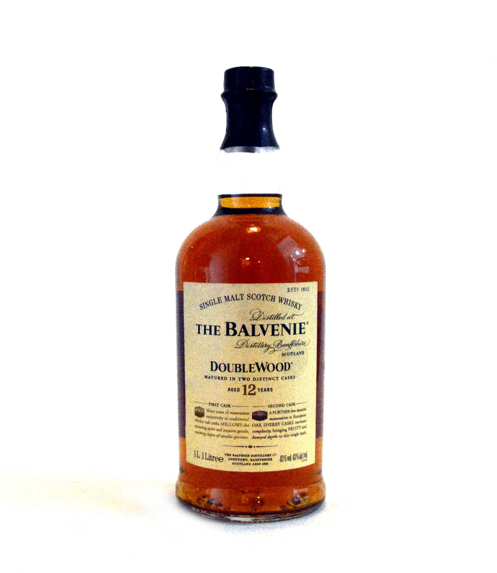The Balvenie “DoubleWood” de 12 años, un single malt madurado en dos tipos de barricas: roble americano ex-Bourbon y barricas de jerez de primer llenado, lo que le confiere un sabor suave y complejo.