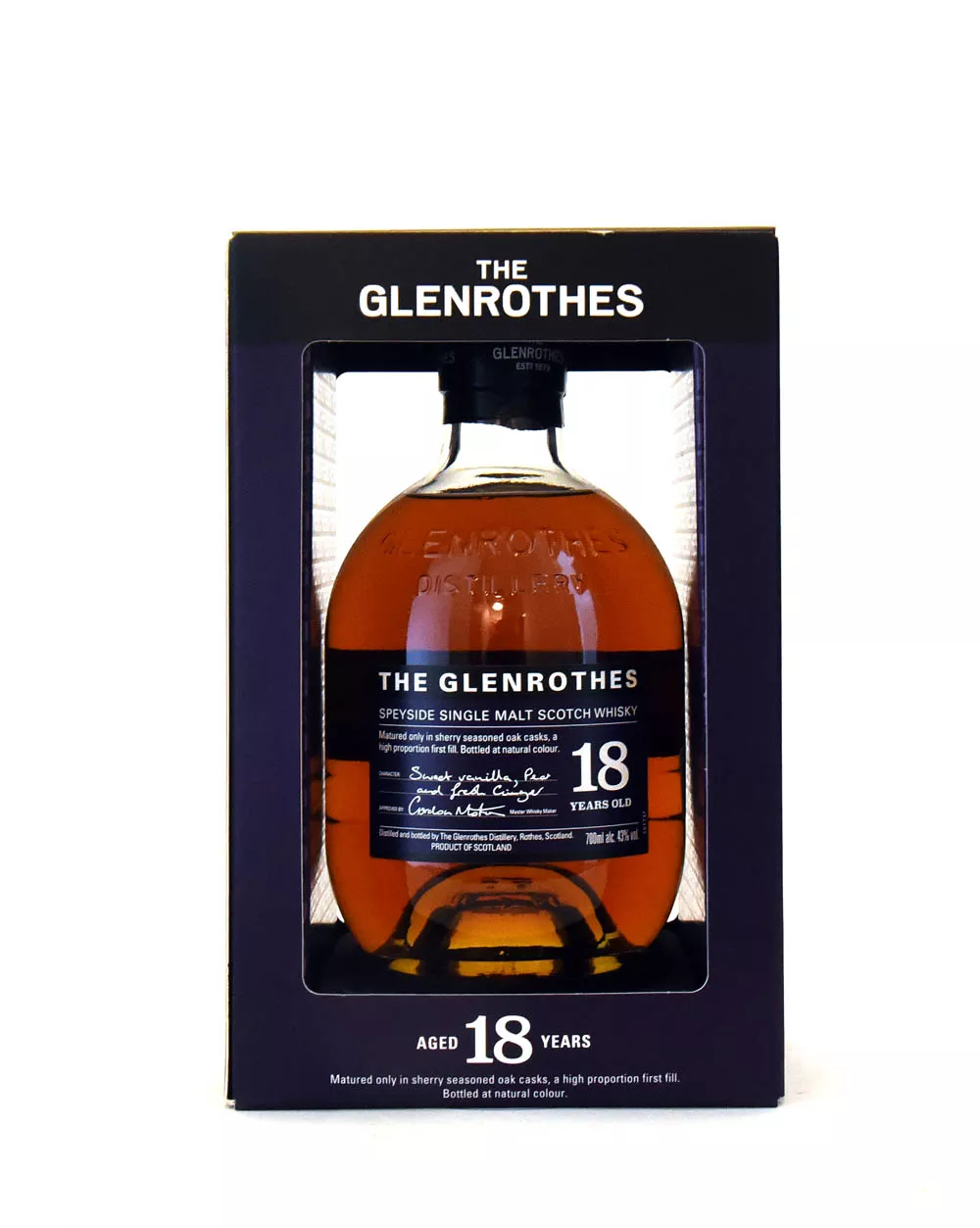 The Glenrothes 18 Años es un single malt de Speyside madurado en barricas de jerez. Un whisky rico, suave y complejo con un perfil de sabor natural.